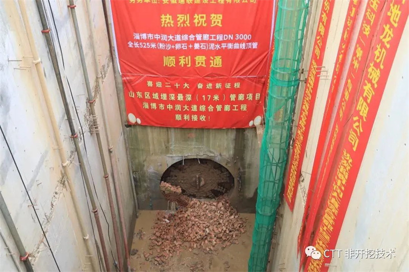 淄博市單段頂進(jìn)距離長、管道覆土深度深頂管工程順利貫通